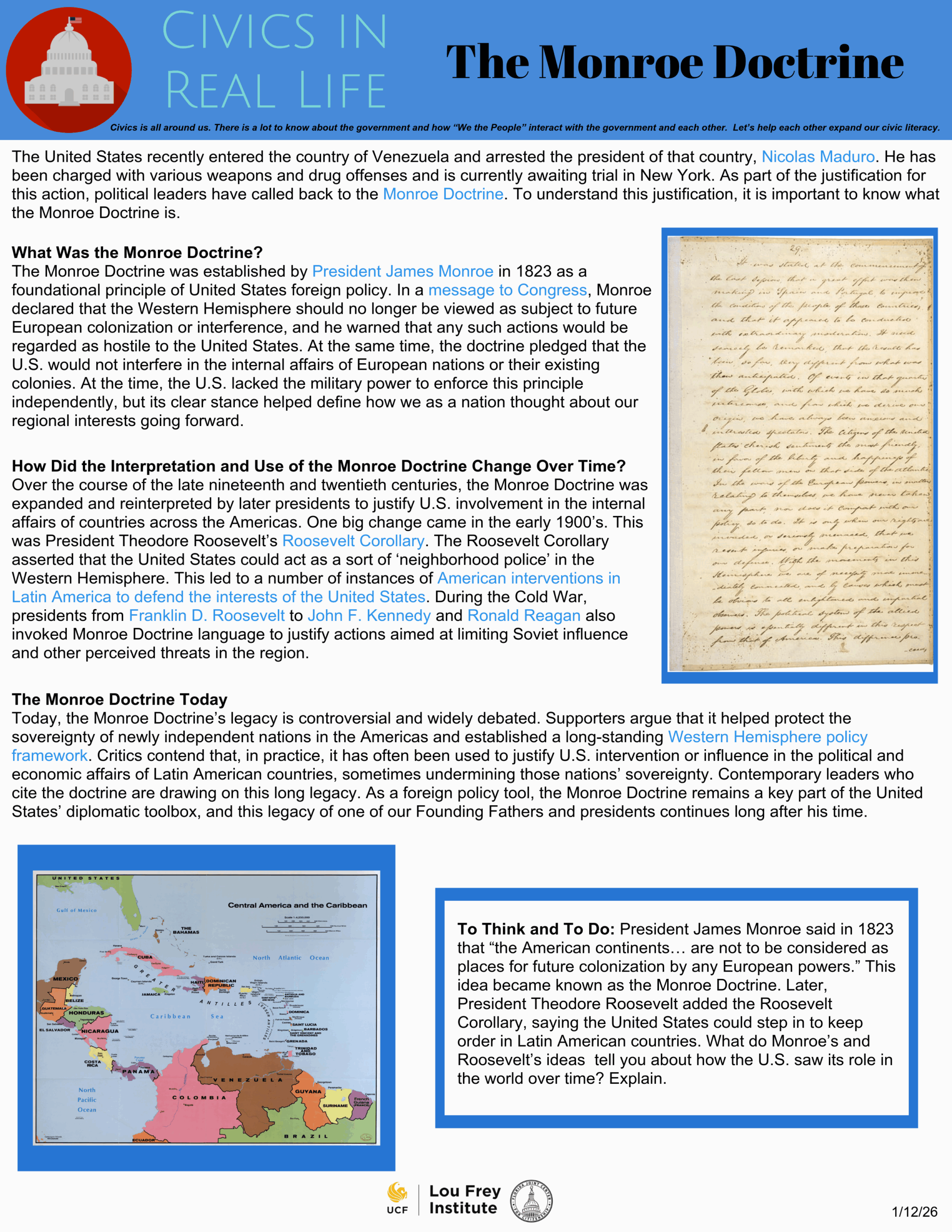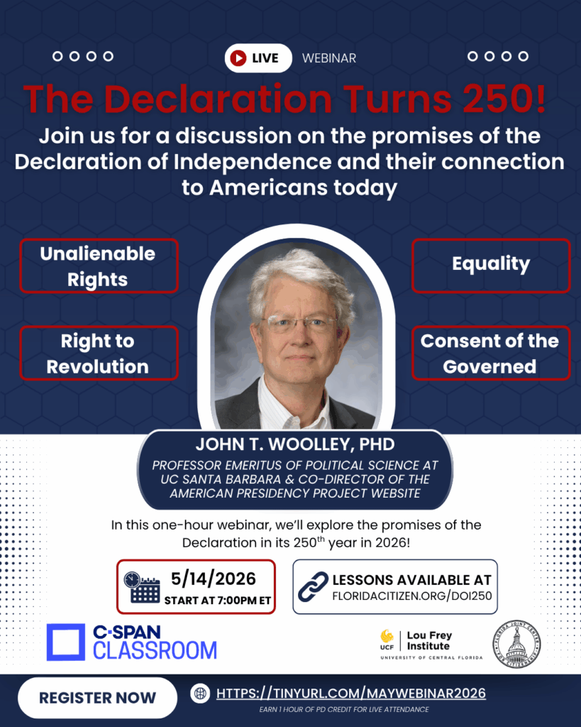 The Florida Joint Center for Citizenship is a partnership between the Lou Frey Institute of Politics and Government at the University of Central Florida and the Bob Graham Center for Public Service at the University of Florida.