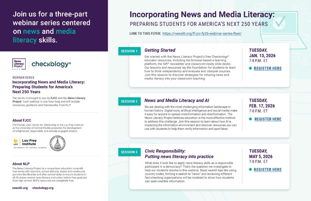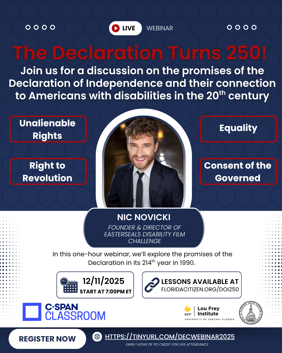 The Florida Joint Center for Citizenship is a partnership between the Lou Frey Institute of Politics and Government at the University of Central Florida and the Bob Graham Center for Public Service at the University of Florida.