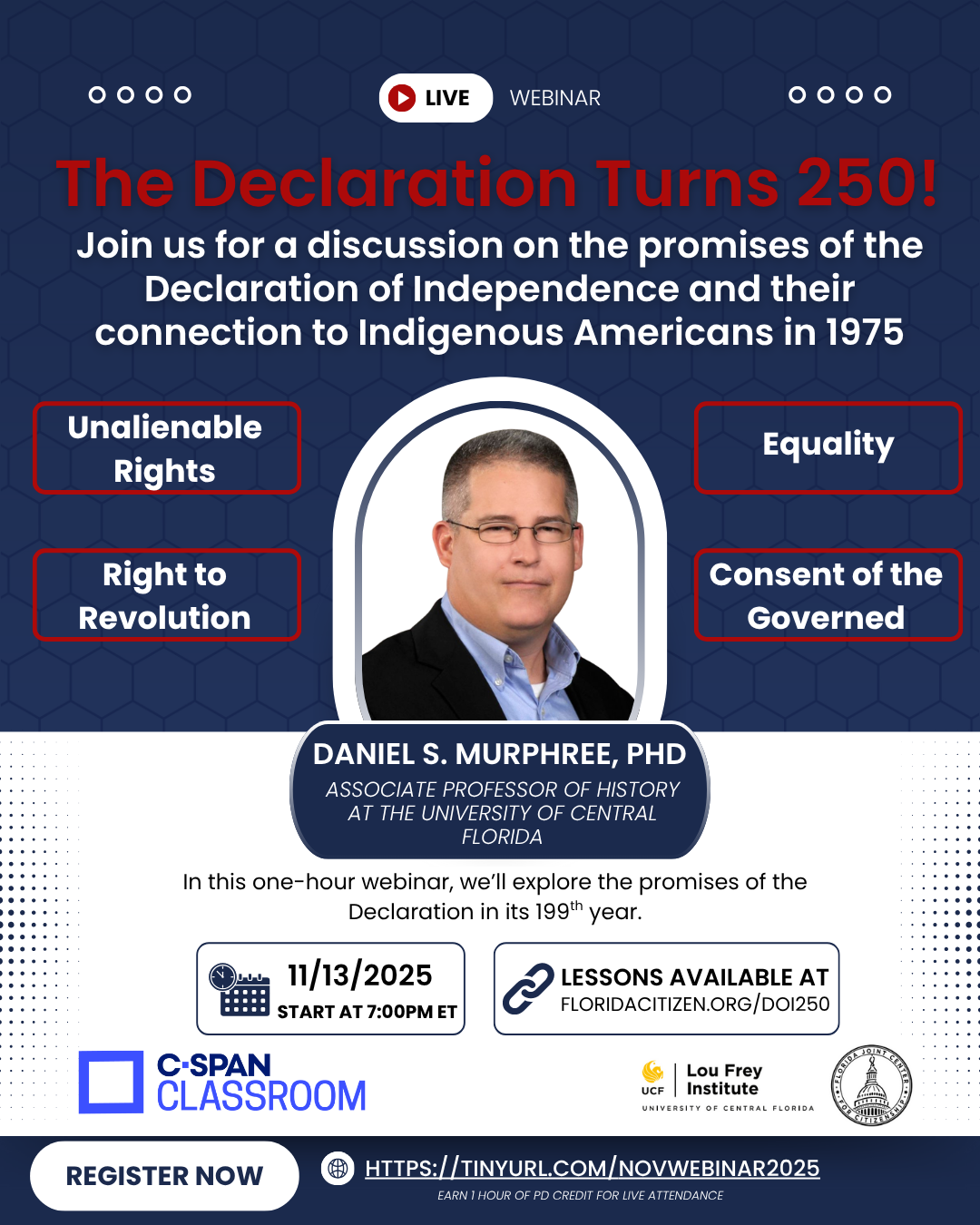 The Florida Joint Center for Citizenship is a partnership between the Lou Frey Institute of Politics and Government at the University of Central Florida and the Bob Graham Center for Public Service at the University of Florida.